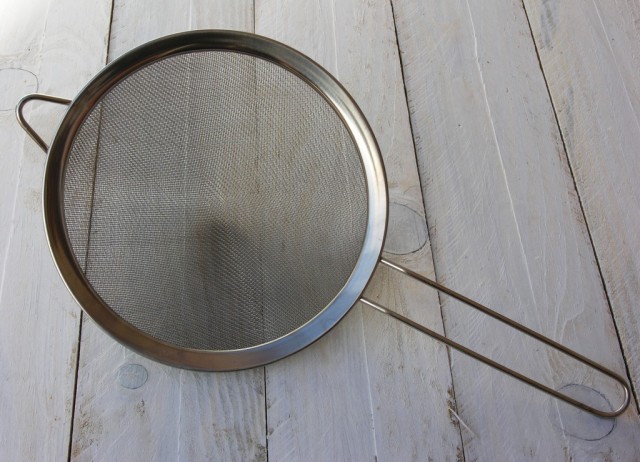 Un tamisador de farina o, si no en teniu com en el meu cas, un colador fi ens anirà perfecte. Tamisar l’ametlla i el sucre fi és imprescindible per a obtenir els macarons. Sense aquest procés la superfÃcie dels macarons quedaria rugosa i no, NO ES POT SALTAR AQUEST PROCÉS! Encara que en la majoria de pastissos jo me’l salto, en aquest cas no serà factible!
